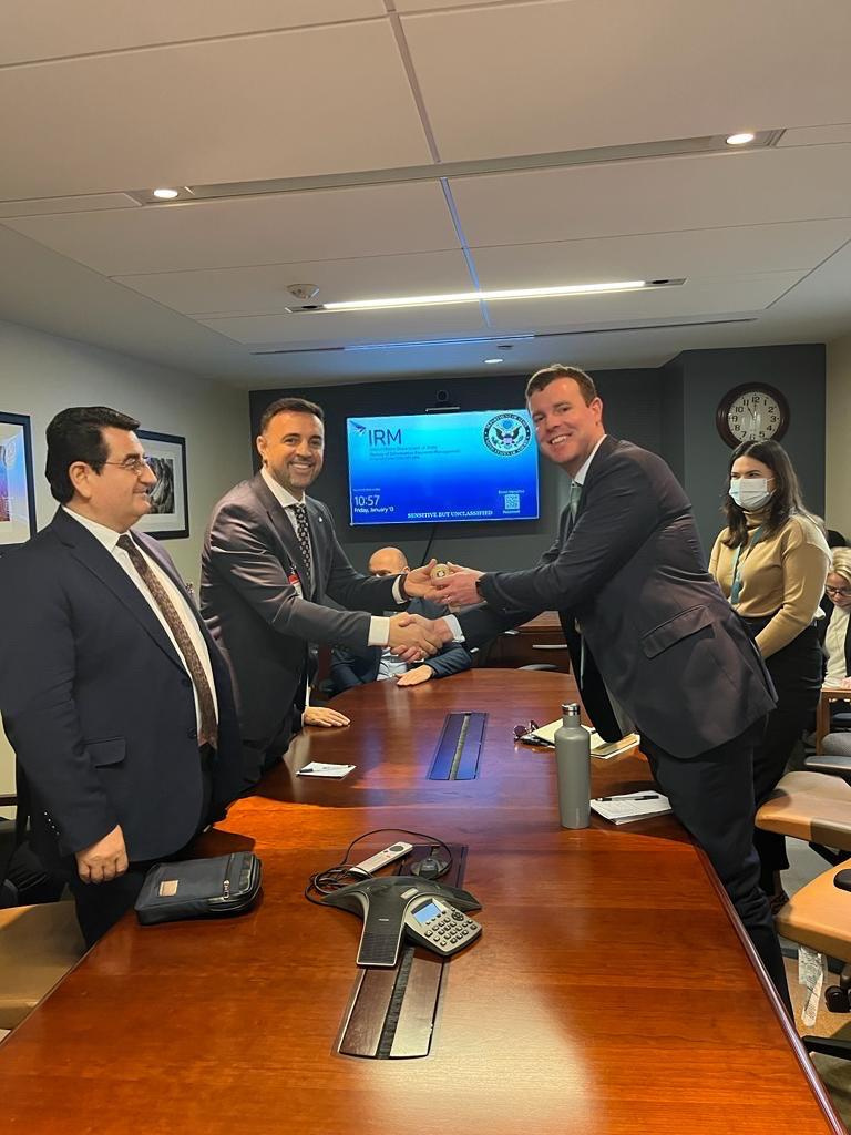 “Në vazhdën e takimeve, sot në Departamentin e Shtetit në Washington DC, delegacioni ka zhvilluar dy takime të ndara me Drejtorin e Zyrës së Antiterrorizmit, per Evropë dhe Azi dhe udhëheqësit e INL (The International Narcotics and Law Enforcement Affairs Office), z. James Applegate, INL, Drejtor Regjional për Evropë dhe Azi, dhe z. Andrew Horm, INL Kosovë”, thuhet nw njoftim.