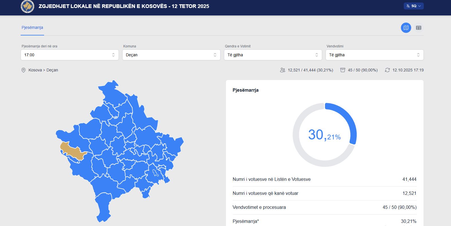 Në Komunën e Deçanit kanë votuar 30,21 për qind e votuesve.
