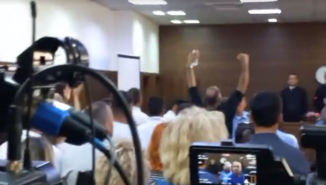 Pas shqiptimit të dënimit nga ana e kryetarit të trupit gjykues, janë dëgjuar duartrokitje në sallë, që ka detyruar gjyqtarin që të thërret për qetësi në sallë./Arbrsh.info/