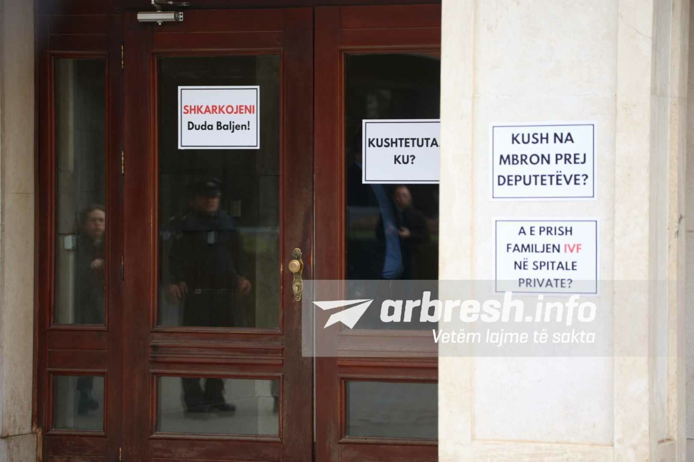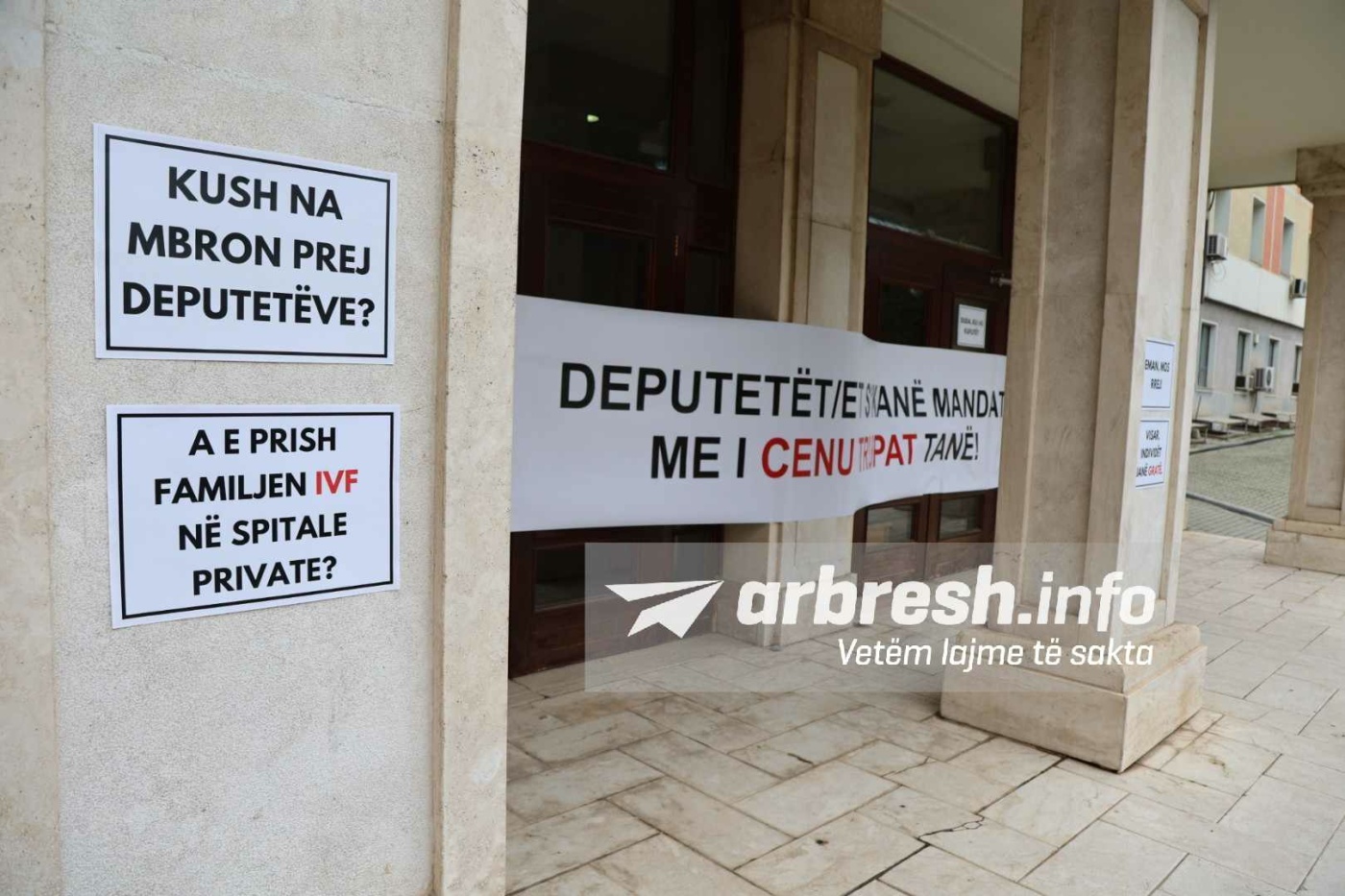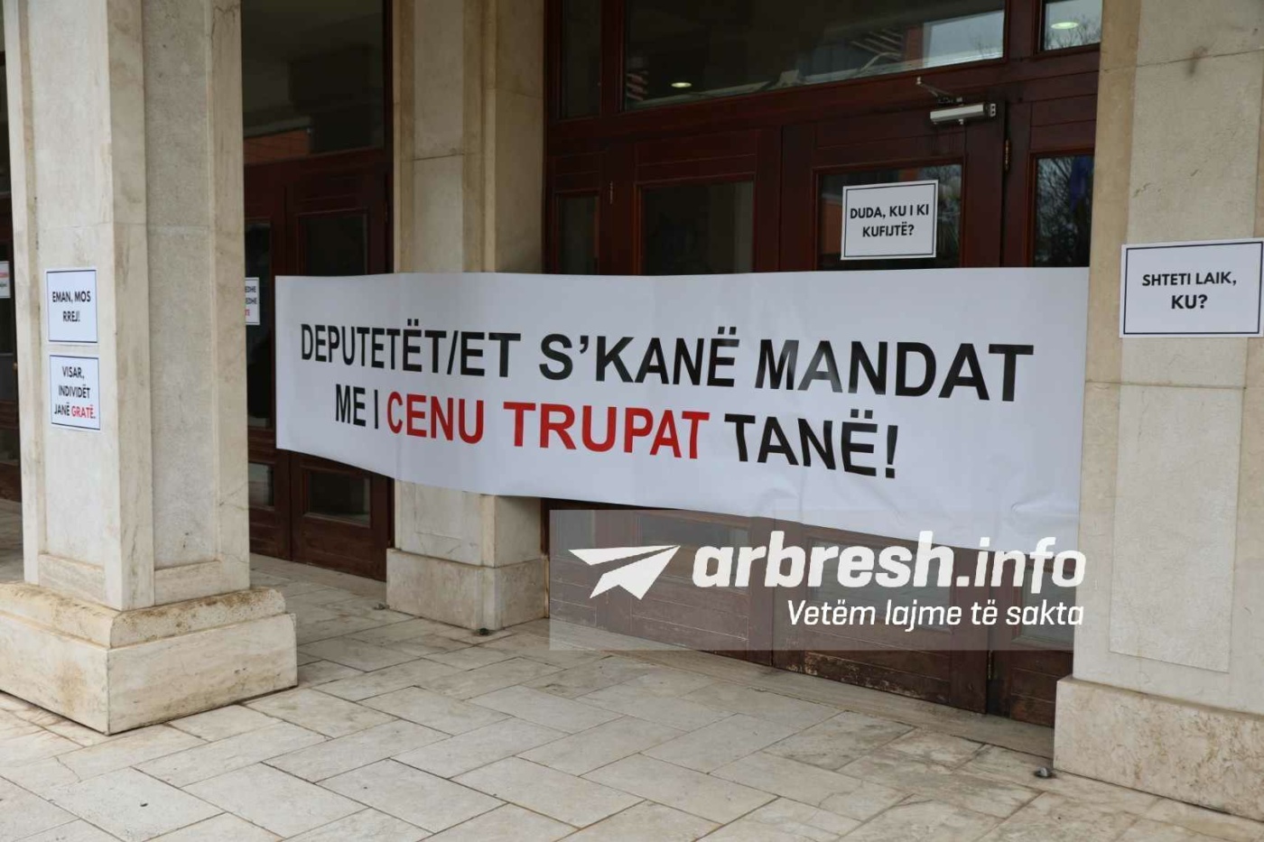 “Deputetët s’kanë mandat me i cenu trupat tanë”, thuhet në pankartat e protestuesve, raporton Arbresh.info