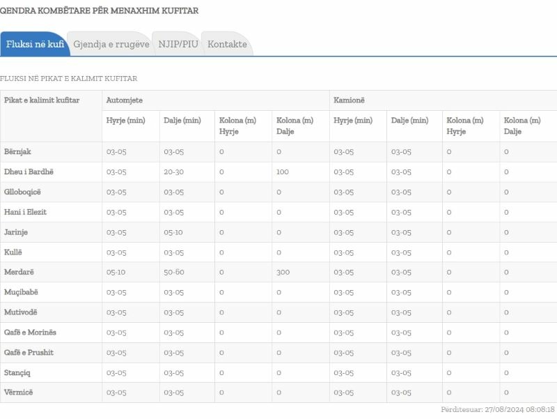 Qendra Kombëtare për Menaxhim Kufitar, njofton se në Merdarë, mërgimtarët po presin deri në një orë, minuta për të dal nga Kosova, ndërsa kolona në këtë pikë kufitare është 300 metra.