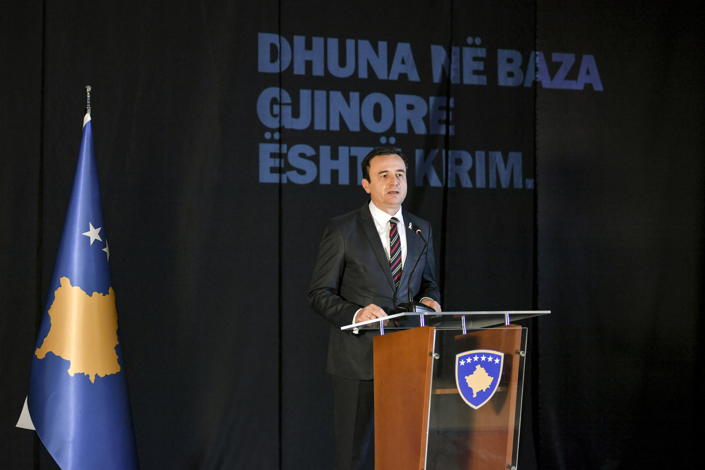 Përmes një komunikate për media nga Zyra e Kryeministrit bëhet e ditur se para shumë të pranishmëve, Kurti u shpreh se mekanizmat për parandalimin dhe luftimin e dhunës në familje dhe dhunës me bazë gjinore janë themeluar dhe tani po funksionojnë, por se krahas përgjegjësisë profesionale në institucionet tona, duhet rritur përpjekjet e veprimet e përbashkëta në luftë kundër dhunës në familje e dhunës me bazë gjinore.
