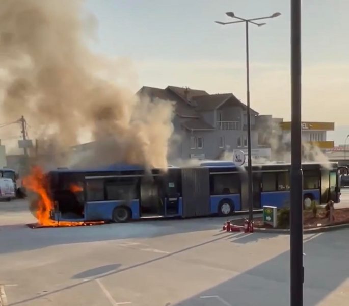 Një autobus urban “24 Yjet” është përfshirë nga flakët në Hajvali të Prishtinës.