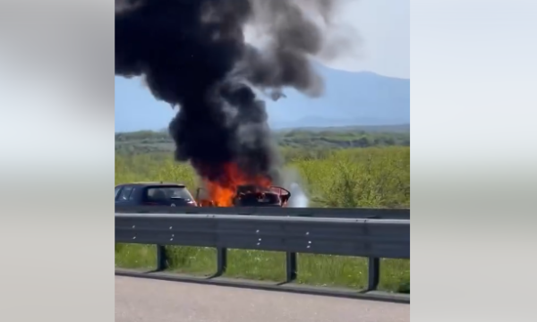 Një veturë është kapluar nga zjarri në autostradën “Ibrahim Rugova”.