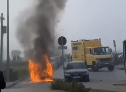 Një veturë është përfshirë nga zjarri në Aeroportin Ndërkombëtar “Adem Jashari”.