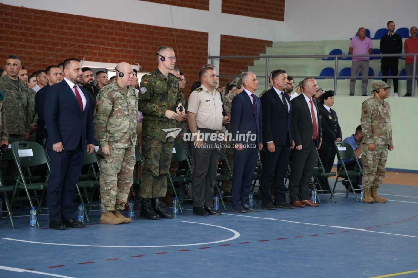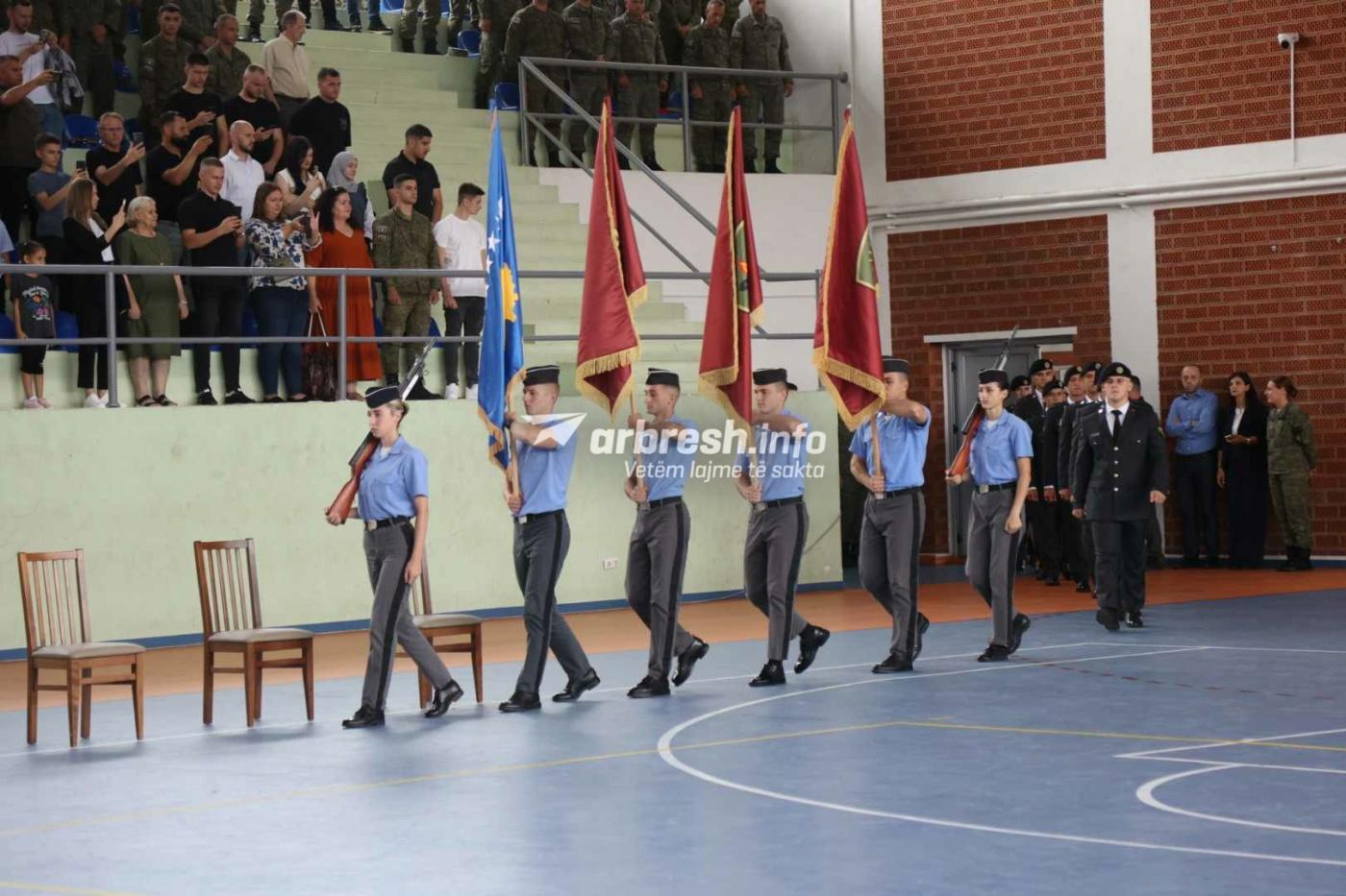 “Qershorin e ngjarjeve te rëndësishme historike po e përmbyllim këtë vit duke shtuar ushtrisë së Kosovës dhe 10 oficere te rinjë. Ëndrrën e të gjithë atyre që sakrifikuan për liri sot ju kadetë po e lehtësoni. Të zgjohesh ne këtë mëngjes më ketë profesion ne zemër e mendje është më e mira. Ju tani keni atë qe duhet për të udhëhequr, përgatitjen fizike, sigurinë mendore dhe emocionale, aftësinë për te udhëhequr çdo gjë, pa marrë parasysh çfarë. Ju pjesëtarët e FSK po tregoni vazhdimisht profesionalizëm të larte në çdo gare dhe trajnim ndërkombëtar. Ju uroj diplomimin dhe keni përkrahjen e popullit dhe gjithmonë përkrahjen time”, tha Maqedonci./Arbresh.info/