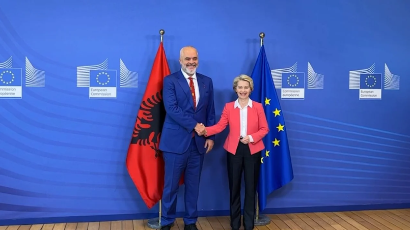 Kryeministri i Shqipërisë, Edi Rama është pritur ditën e sotme në selinë e BE-së në Bruksel nga presidentja e Komisionit Eropian, Ursula Von der Leyen.