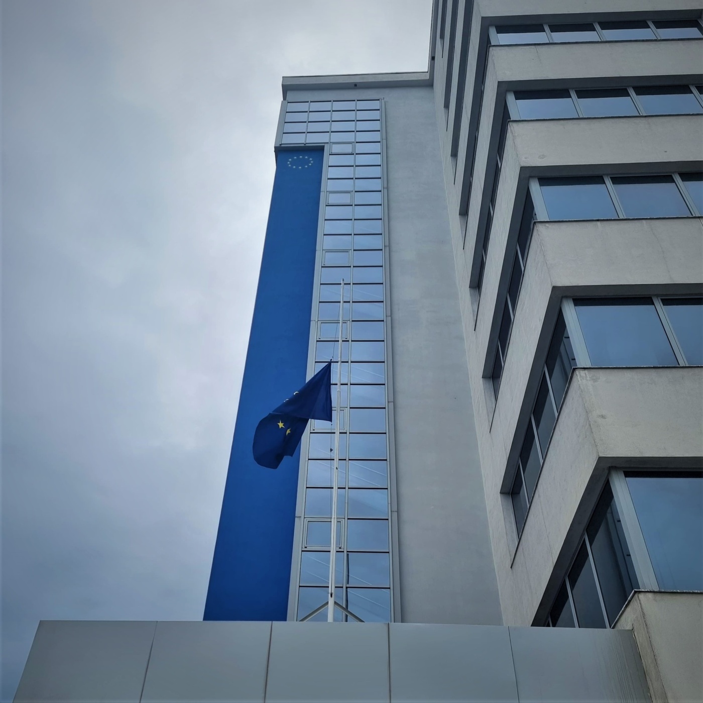 Flamuri i Bashkimit Evropian në zyrën e BE-së në Kosovë është ulur në gjysmështizë në përkujtim të të gjitha grave dhe vajzave të vrara në Kosovë.