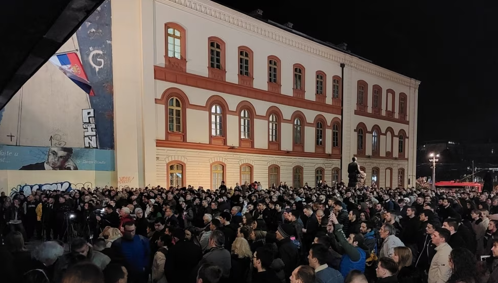 Pas adresimit para Fakultetit të Filozofisë, protestuesit marshuan në rrugët e Beogradit dhe u ndalën para ndërtesës së Radio Televizionit të Serbisë (RTS), nga ku kërkuan “një opinion ndryshe, jo vetëm që Kosova është humbur” gjatë transmetimit në këtë kanal shtetëror.
