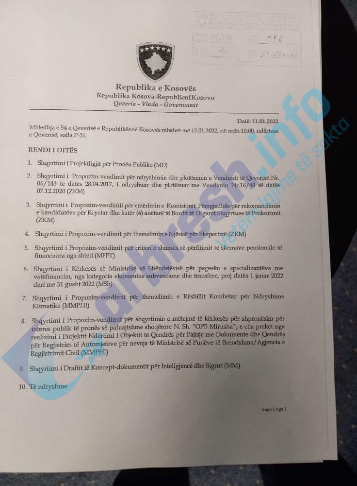 Dokument/ Kjo është arsyeja pse Kurti mbledh sot ministrat