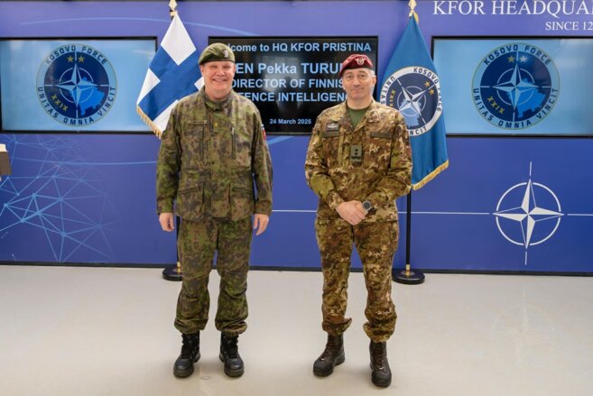 Komandanti i misionit të KFOR-it të udhëhequr nga NATO, Gjeneral Major Enrico Barduani, ka pritur Drejtorin e Inteligjencës së Mbrojtjes të Finlandës, Brigadier Gjeneral Pekka Turunen, në Shtabin e KFOR-it, në Kampin Film City, Prishtinë.