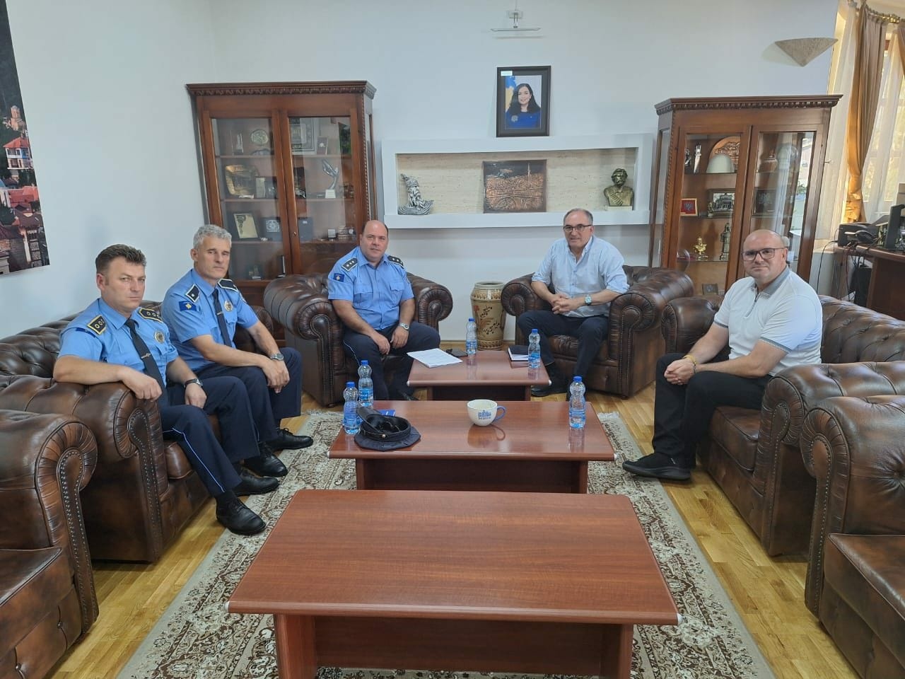 Drejtori i policisë i Drejtorisë Rajonale të Policisë në Prizren, Kolonel Faton Alija bashkë me Shefin e Sektorit Rajonal të Operativës, Major Vebih Zekolli dhe komandantin e Stacionit Policor të Prizrenit , kapiten Nexhdet Mrasori ishin në takim punë me kryetarin e komunës së Prizrenit, Shaqir Totaj.