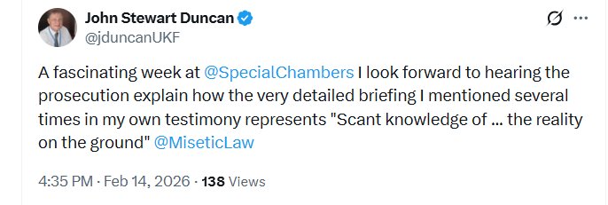 Ish-ambasadori britanik, John Stewart Duncan, ka reaguar pas një jave paraqitjeje të deklaratave përmbyllëse në procesin Thaçi dhe të tjerët në Gjykatën Speciale në Hagë, duke hedhur kritika ndaj vlerësimit të prokurorisë për deklarimet e tij.