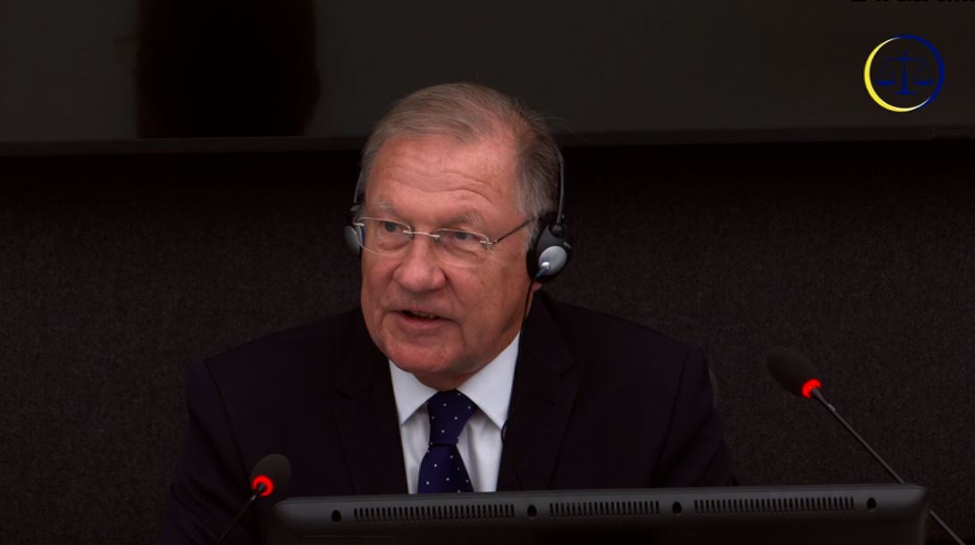 John Stewart Duncan, ish-këshilltari i NATO-s, po jep dëshminë e tij në Hagë, i cili është thirrur nga mbrojtja e Thaçit.