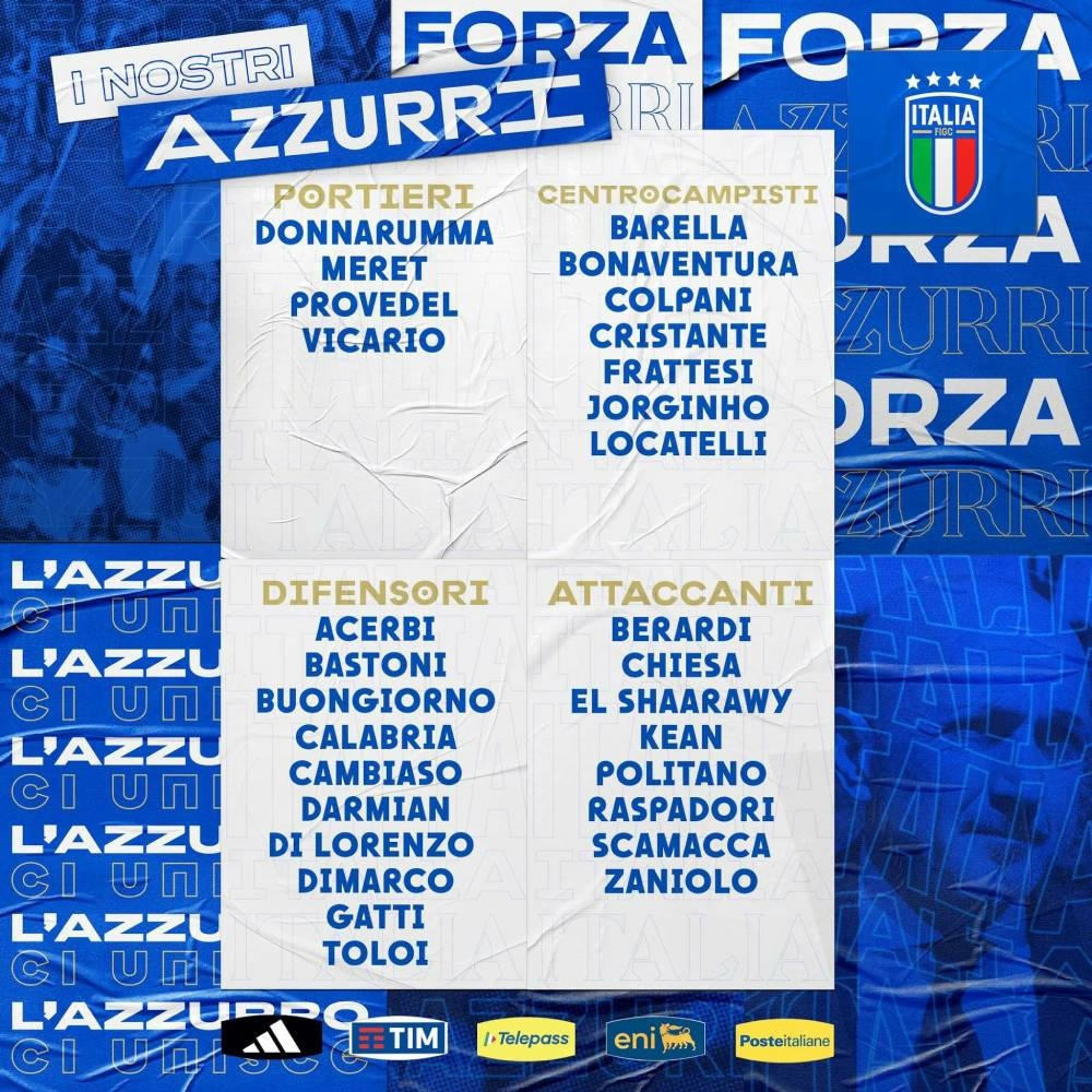 Spalletti ka ftuar 29 futbollistë. Davide Calabria, kapiteni i Milanit, rikthehet në Kombëtare. Ndërkohë që ka ardhur ftesa e parë për Andrea Cambiason (Juventus) dhe Andrea Colpanin (Monza).