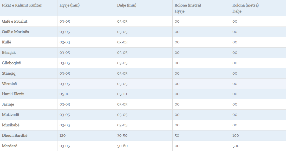 Në të gjitha pikat e tjera kufitare, pritjet maksimale për të hyrë në Kosovë janë 15 minuta, aq sa janë edhe pritjet për të dalë nga Kosova./Arbresh.info/