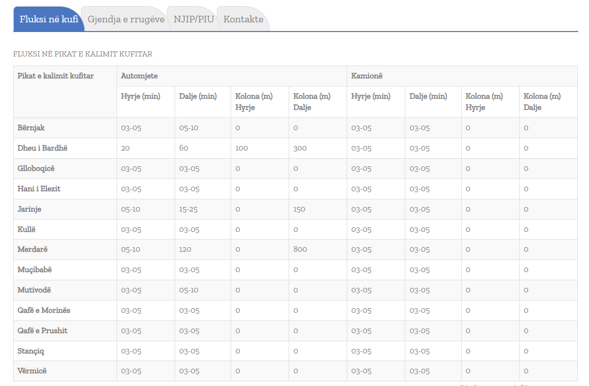 Sipas QKMK-së, në pikat e tjera kufitare nuk raportohet për kolona e pritje të gjata./Arbresh.info/