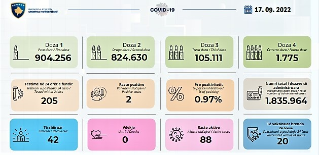 Në total janë vetëm 88 raste aktive, ndërsa nga fillimi i pandemisë nga coronavirusi kanë vdekur 3,199 persona.