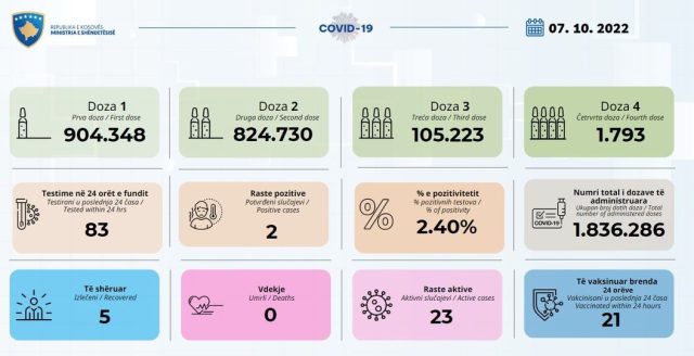 Sipas ministrisë janë shëruar pesë persona kurse gjithsej janë 23 raste aktive me këtë virus./arbresh.info/