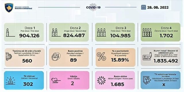 Po ashtu janë regjistruar 89 raste të reja me coronavirus dhe janë shëruar 302 persona.