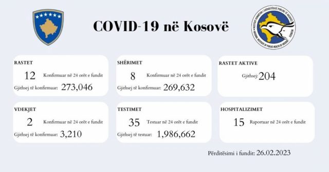 Janë konfirmuar 12 raste të reja me këtë virus, teksa në 24 orët e fundit janë shëruar 8 pacientë.