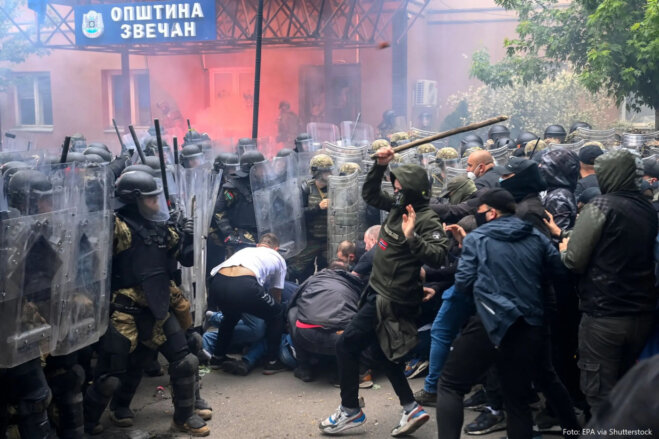 Më 29 maj 2023, në turmën e protestuesve serbë kishte edhe persona me maska, të cilët u përfshin në përleshje me ushtarët e KFOR-it duke përdorur shok-bomba, koktej molotovi dhe mjete të tjera të forta.