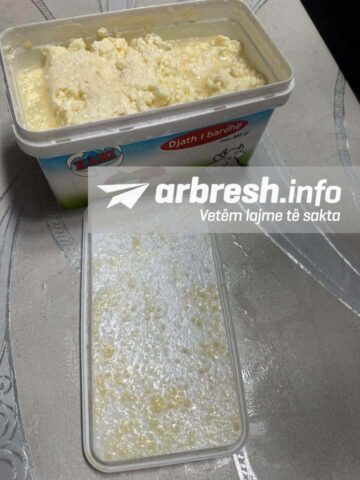 Një qytetar ka dërguar disa pamje në redaksinë e portalit Arbresh.info, ku shihet se pas një blerje në Viva Fresh në Creop të Kamenicës, ka blerë një djath i cili ka rezultuar të jetë ‘gjizë’ i prishur.