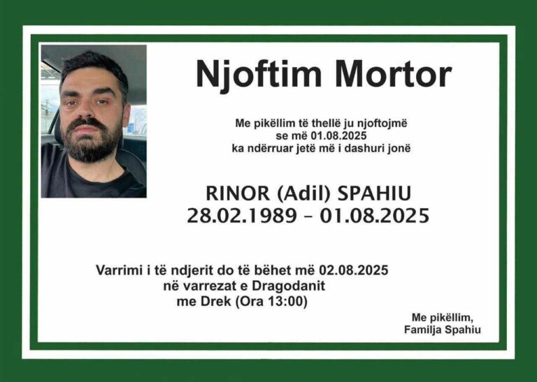 Rinor Spahiu, 36-vjeçar, i cili humbi jetën të premten si pasojë e një aksidenti mes një veture dhe një motoçiklete në Prishtinë, do të varroset sot.