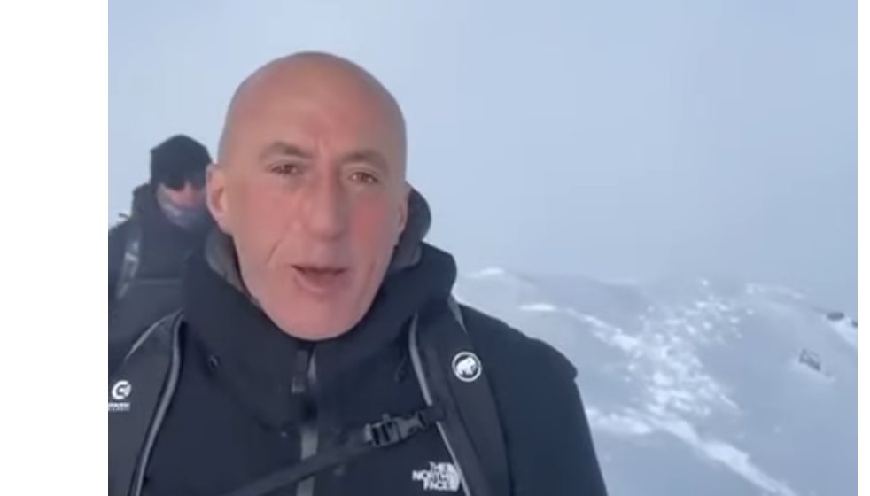 Këtë e ka treguar vetë përmes një videoje të publikuar në Facebook, ku shihet lart në kushte mjaft të vështira.
