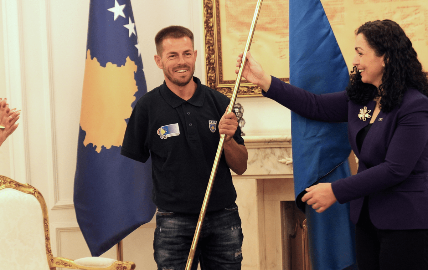 Ditë më parë, Presidentja e Republikës së Kosovës, Vjosa Osmani i ka dorëzuar flamurin e Republikës së Kosovës, para-atletit Grevist Bytyçi.