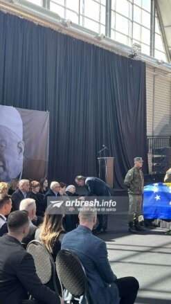 Në këtë ceremoni janë të pranishëm edhe familjarët e afërt, përfshirë bashkëshorten, djalin dhe nënën e të ndjerit.