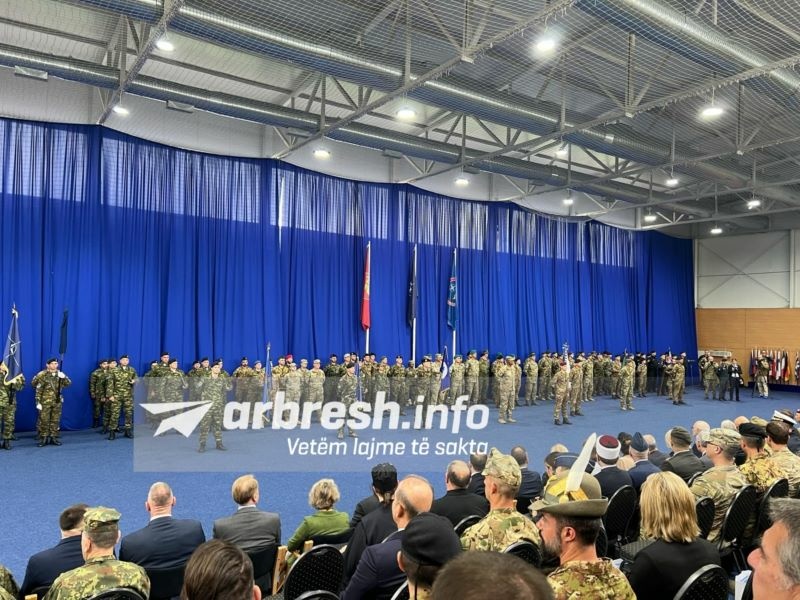 Në këtë ceremoni po marrin pjesë presidentja e vendit, Vjosa Osmani, kryeministri i Kosovës, Albin Kurti, drejtori i policisë, Gazmend Hoxha, ministri i Mbrojtjes, Ejup Maqedonci, ministri i Punëve të Brendshme, Xhelal Sveçla, ambasadori amerikan, Jeffry Hovenier, ambasadori i Shqipërisë në Kosovë, Petrit Malaj dhe kryetari i Prishtinës, Përparim Rama./Arbresh.info/