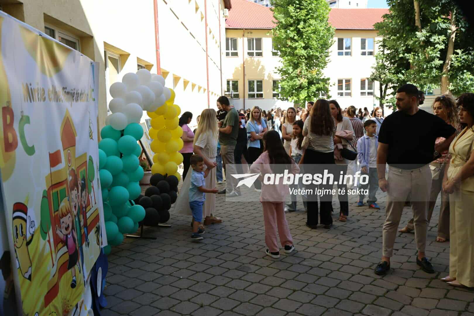 Një numër i madh nxënësish po fillojnë për herë të parë shkollën në klasën e parë, duke përjetuar emocionet e ditës së parë.