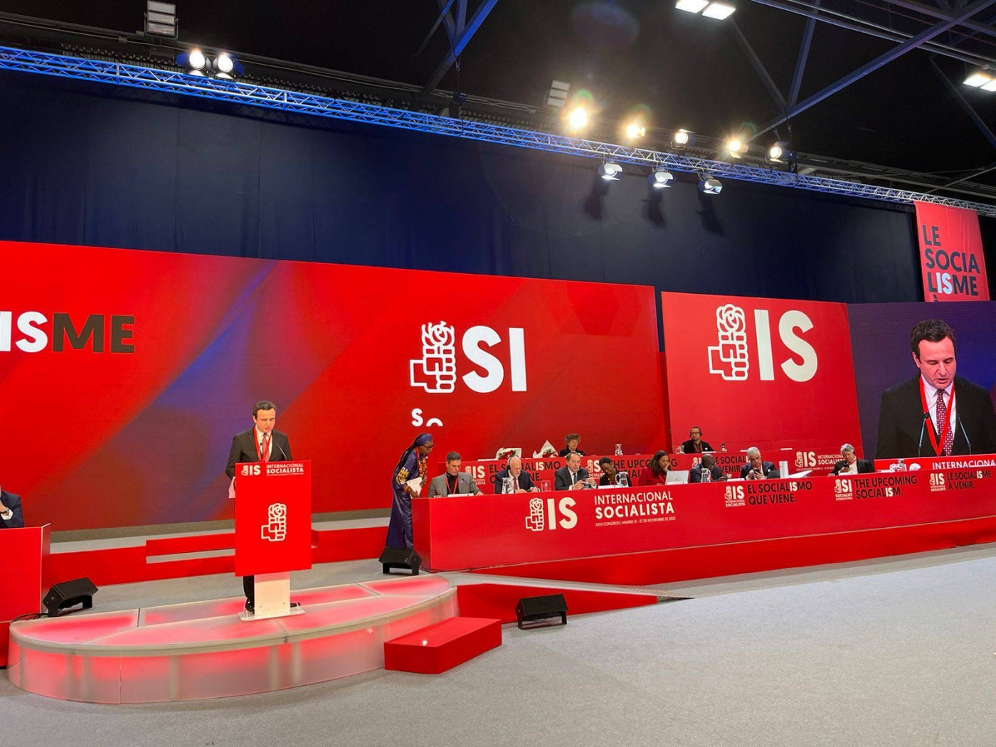 Fjalimi i Kryeministrit të Republikës së Kosovës, Albin Kurti, në Kongresin e 26-të të Internacionales Socialiste, që këtë fundjavë po mbahet në Madrid, e ku kryetar i ri u zgjodh Kryeministri spanjoll, Pedro Sanchez.