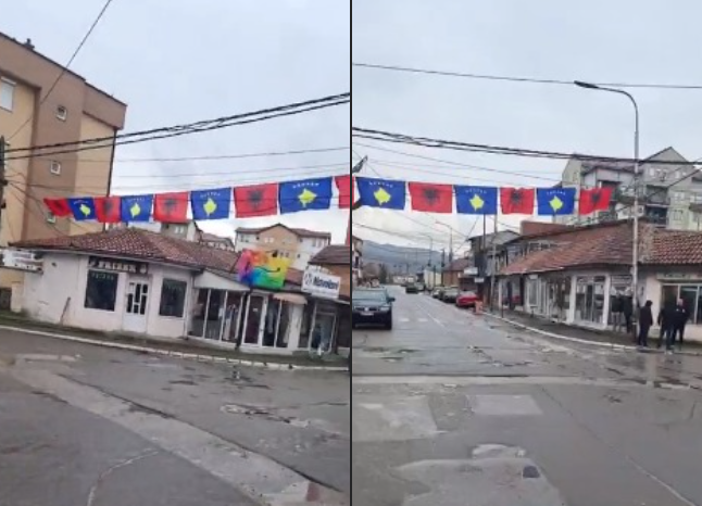 Disa qytetarë në lagjen e boshnjakëve në Mitrovicë kanë vendosur flamurin e Kosovës dhe të Shqipërisë.