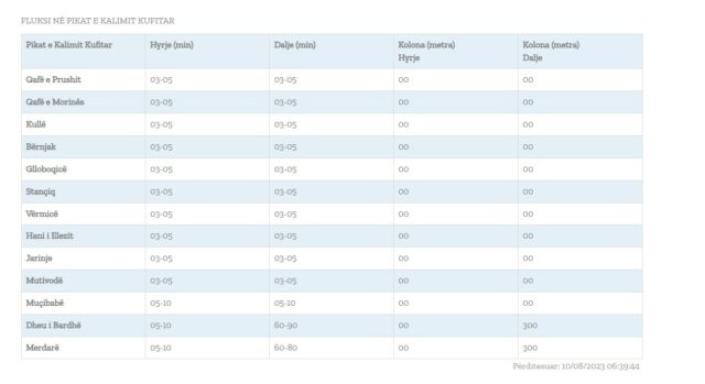 Sipas këtyre të dhënave të publikuara në ora 06:39 qytetarët po presin nga 60 deri në 80-90 minuta për të dalë nga territori i Kosovës.