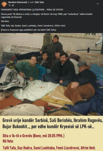 “Greva jonë 18-ditore e urisë, e mbajtur në Bonn në maj 1996, pat “turbulluar” edhe knetën rugoviste në Kosovë”, ka shkruar ai.