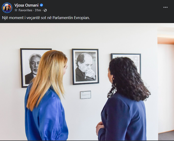 Ajo ka publikuar një fotografi brenda Parlamentit Evropian, ku në mesin e disa fotografive, shihet edhe ajo e ish presidentit Rugova.