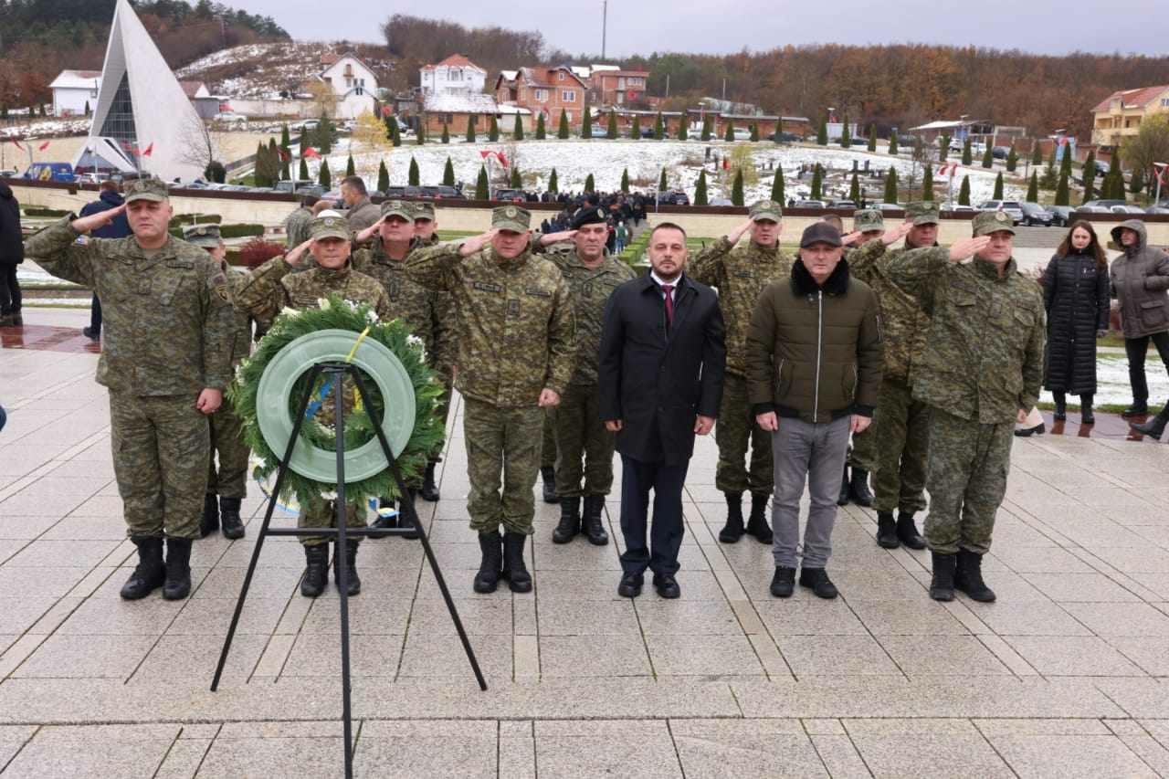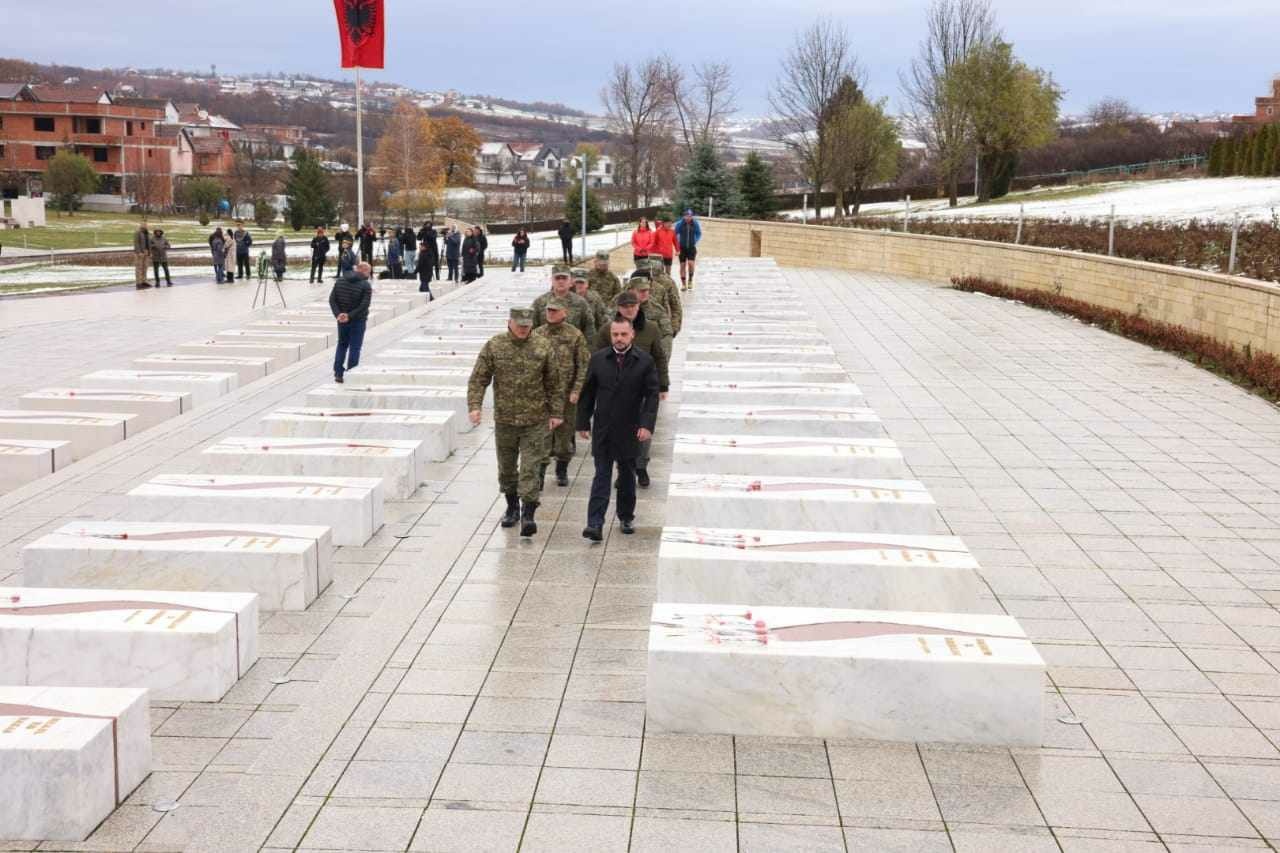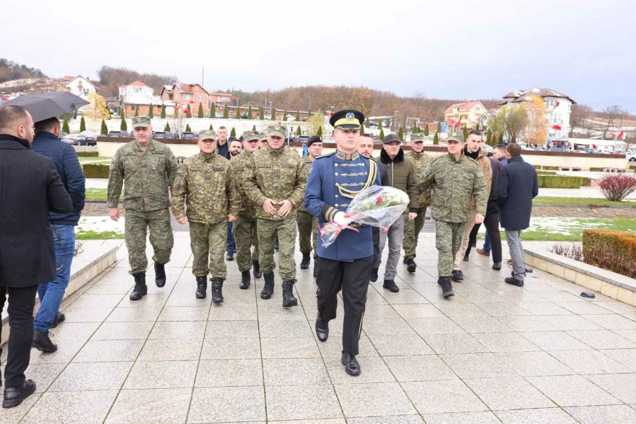 “Me rastin e Shpalljes së Pavarësisë së Shqipërisë, daljes publike të Ushtrisë Çlirimtare të Kosovës dhe ditëlindjes së Komandantit legjendar Adem Jashari, sot udhëheqës të lartë të Ministrisë së Mbrojtjes dhe FSK-së, gjeneralë e oficerë të FSK-së, si dhe zyrtarë të lartë të Ministrisë së Mbrojtjes bënë homazhe në kompleksin memorial në Prekaz në nderim të sakrificës së familjes Jashari dhe gjithë të rënëve për Liri dhe Pavarësinë e Kosovës”, thuhet në njoftimin e FSK-së./Arbresh.info/