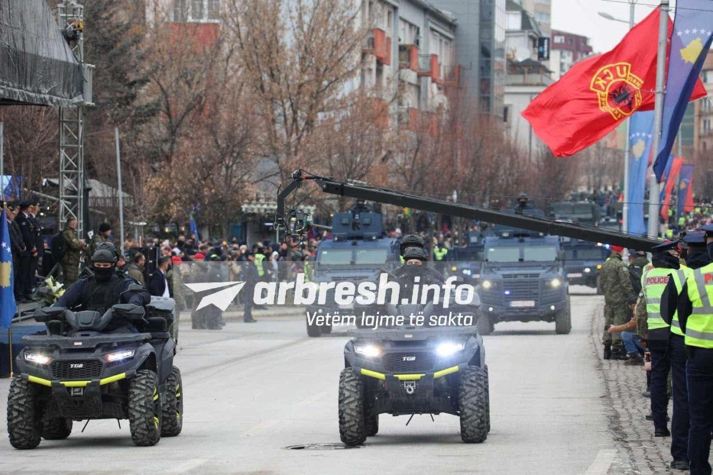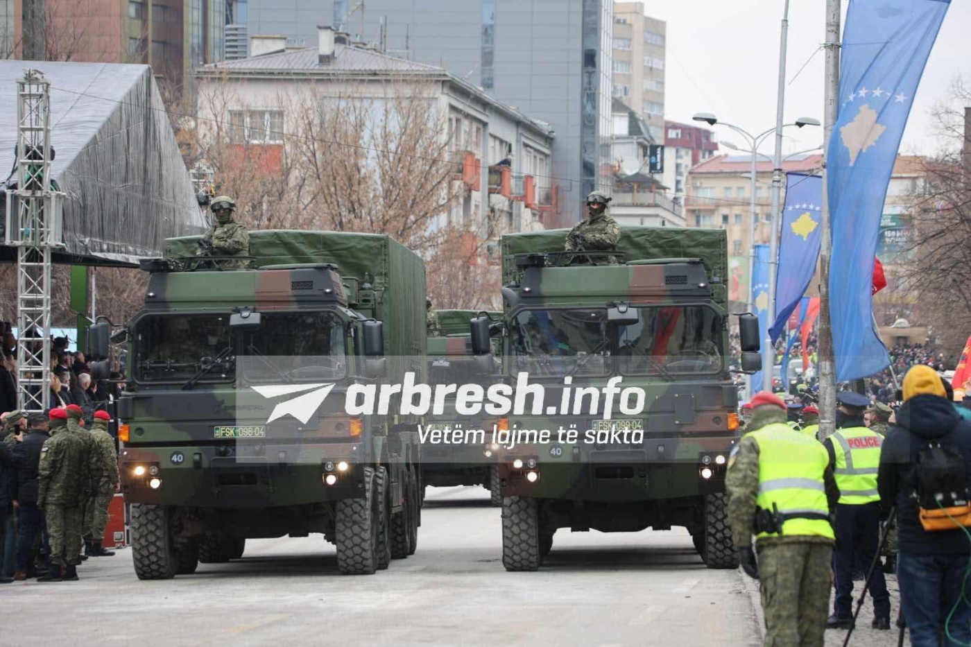 Me rastin e 17 vjetorit të Pavarësisë së Republikës së Kosovës, FSK dhe Policia e Kosovës kanë parakaluar në sheshin “George Bush” në Prishtinë.