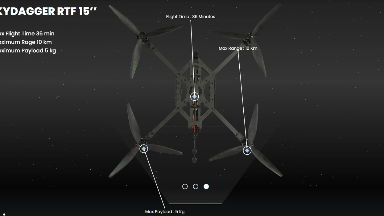 Droni “SkyDagger 15” mund të fluturojë deri në 36 minuta, të arrijë shpejtësi deri në 130 km/h dhe të bartë ngarkesa deri në 5 kilogramë.