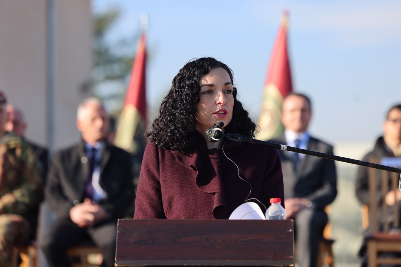 “Jam krenare që e bartni uniformën e forcave tona, jam krenare që jeni trashëgimtarë të Ushtrisë Çlirimtare të Kosovës dhe jam krenare me hapin e parë që hodhët në Komandën e Doktrinës dhe Stërvitjes duke prekur ëndrrën tuaj për tu bërë ushtarë dhe ushtare të FSK-së e duke filluar rrugëtimin tuaj me plot sfida në mbrojtje të atdheut tonë të dashur Republikës së Kosovës…… Tani sa jeni familjarizuar me çdo trajnim sipas doktrinës së ushtrisë amerikane dhe standardeve të NATO-s e të gatshëm për të realizuar misionin dhe detyrat e shenjta në operacionet e përbashkëta shumëkombëshe krah për krah me kolegët e forcave të vendeve aleate në shërbim të mbrojtjes së vlerave euroatlantike, të demokracisë, paqes, stabilitetit dhe sigurisë rajonale kontinentale dhe globale”.