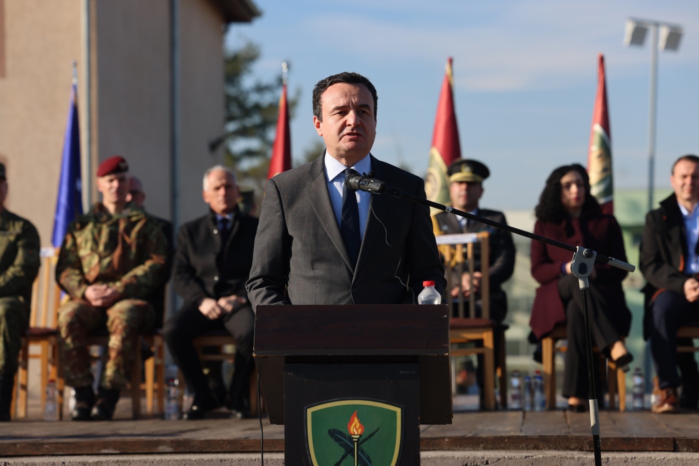 Ushtria jonë po rritet e do të zhvillohet në vazhdimësi, sepse kemi hequr çdo kufizim ligjor që e pengon këtë, dhe sepse ashtu si çdoherë popullit tonë nuk i mungojnë të rinj e të reja si ju që duan t’i shërbejnë atdheut, që me nder dhe krenari bartin veshur uniformën e Forcës së Sigurisë së Kosovës, dhe ashtu si shqiponja sypatrembur që qëndisur si emblemë keni në krahë, janë të gatshëm kurdo dhe kudo të garantojnë sigurinë e qytetarëve dhe të mbrojnë me jetën e tyre tërësinë e territorit të Kosovës”, u shpreh Kurti, përcjell Arbresh.info
