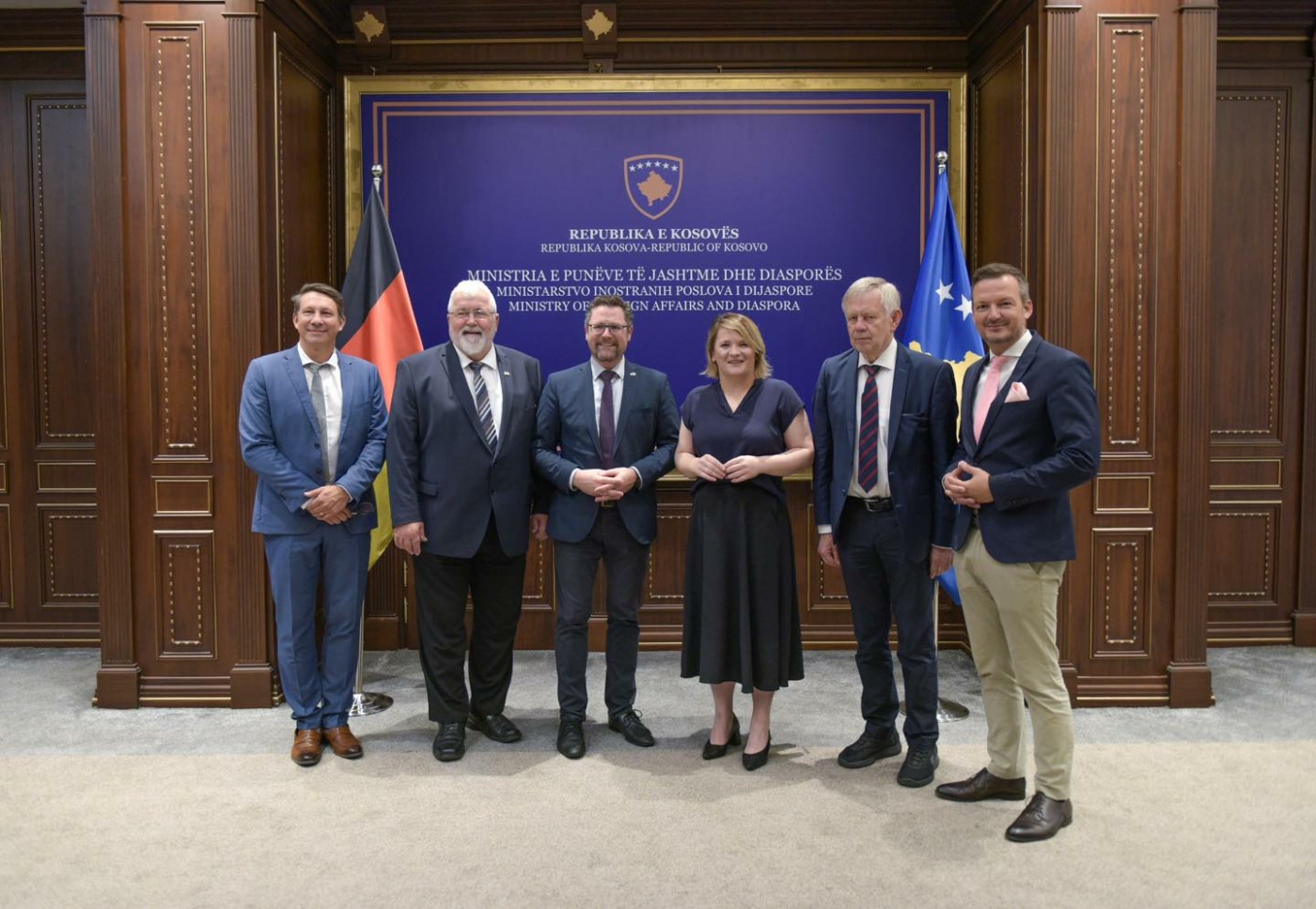 Zëvendësministrja e Punëve të Jashtme dhe Diasporës, Liza Gashi, në ambientet e Ministrisë, mirëpriti sot një delegacion gjerman nga shteti i Bavarisë, të udhëhequr nga Dr. Gerhard Hopp, e të përbërë nga deputetë të Parlamentit bavarez, përfaqësues të Kancelarisë së Bavarisë dhe përfaqësues të bizneseve nga Bavaria.