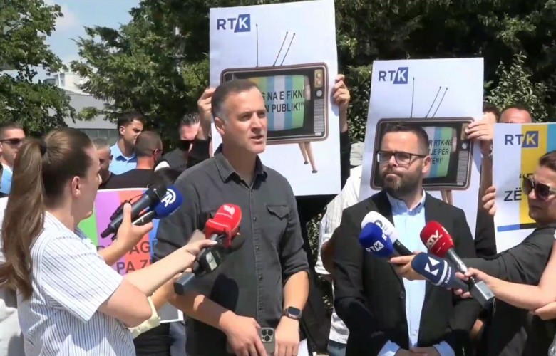 Është mbajtur një protestë para ndërtesës së Kuvendit dhe Qeverisë së Kosovës, e organizuar nga Sindikata e Punëtorëve të Radiotelevizionit të Kosovës (SPERTK).