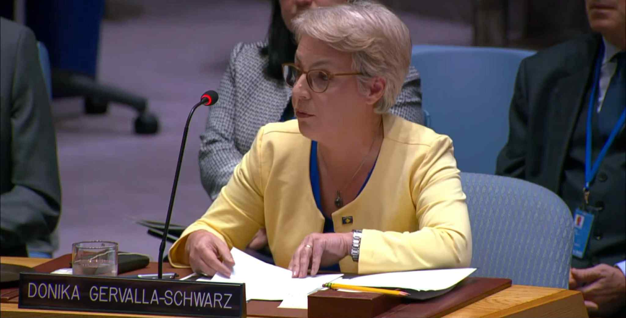 Në fjalën e saj para Këshillit të Sigurimit të OKB-së, zëvendëskryeministrja dhe ministrja në detyrë e Punëve të Jashtme dhe Diasporës, Donika Gërvalla denoncoi përfshirjen e strukturave të regjimit të Vuçiqit në nxitjen e dhunës, krimit të organizuar dhe propagandës kundër Kosovës.