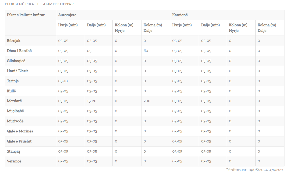 Qendra Kombëtare për Menaxhim Kufitar ka përditësuar të dhënat për pritjet në pikat kufitare të Kosovës.