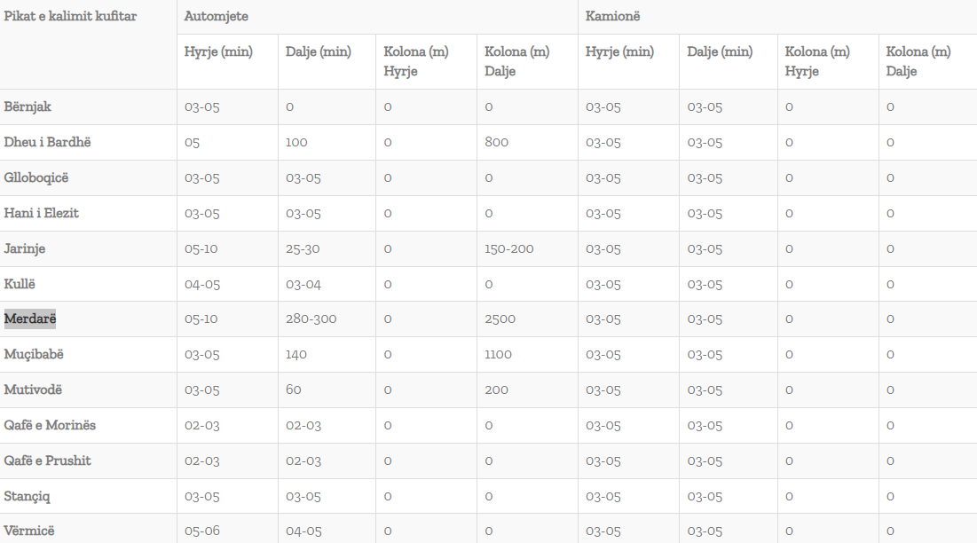 Pikat më të ngarkuara janë në Merdarë ku pritjet zgjasin deri në pesë orë dhe në Muçibabë deri në dy orë e gjysmë.