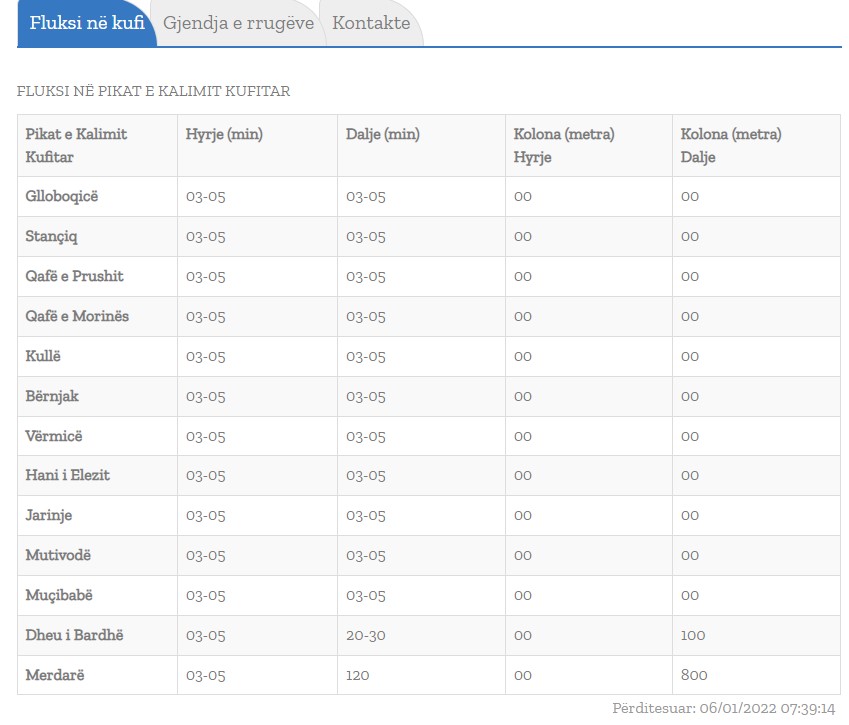 Qendra Kombëtare për Menaxhimin Kufitar pritjet më të gjata për të lëshuar Kosovën janë regjistruar në vendkalimin kufitar në Merdar, ku po pritet deri në dy orë./arbresh.info/