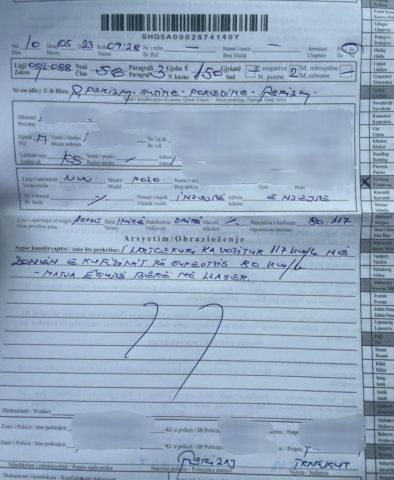 Gjatë këtij aksioni në orën 09:28 policia ka ndaluar shoferin R.R (M/K) i moshës 25 vjeçar, i cili me veturë shkaktoi kundërvajtje në komunikacion, tejkalim të shpejtësisë, ku në zonën e kufizimit 80 km/h, zhvilloi shpejtësi 117 km/h dhe ndaj tij policia i shqiptoi një gjobë, sipas ligjit të komunikacionit rrugor 150 euro dhe 2 pikë negative.
